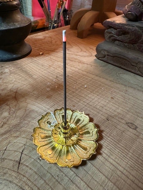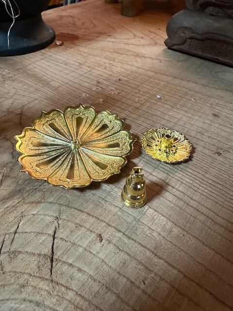 ※最近は朝の勤行時に通常お香立てにこの蓮花三宝も使用しています。