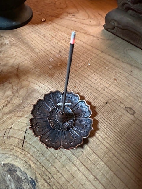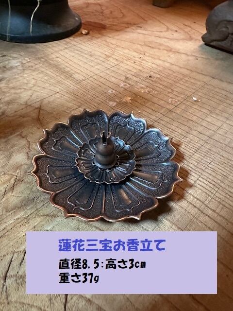※最近は朝の勤行時に通常お香立てにこの蓮花三宝も使用しています。