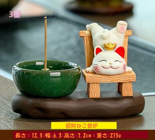 ★幸運を招く可愛らしいデザインの、招財猫ニャン香炉。
