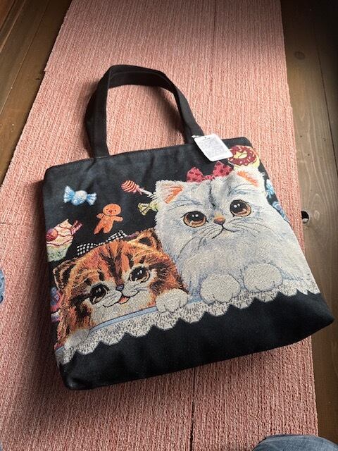 猫の刺繍コブラン織り大容量軽量トートバッグ