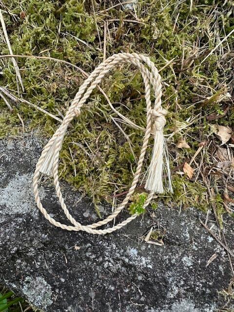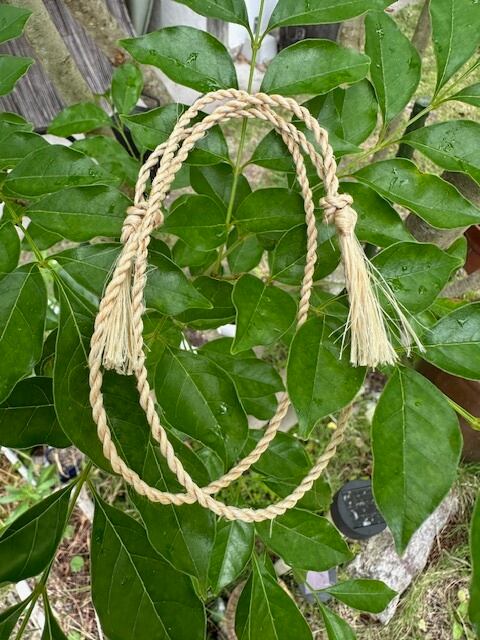 精麻(神仏を敬い天津祓いに使う麻)を8巻き(末広がり)ねじりで結びました。