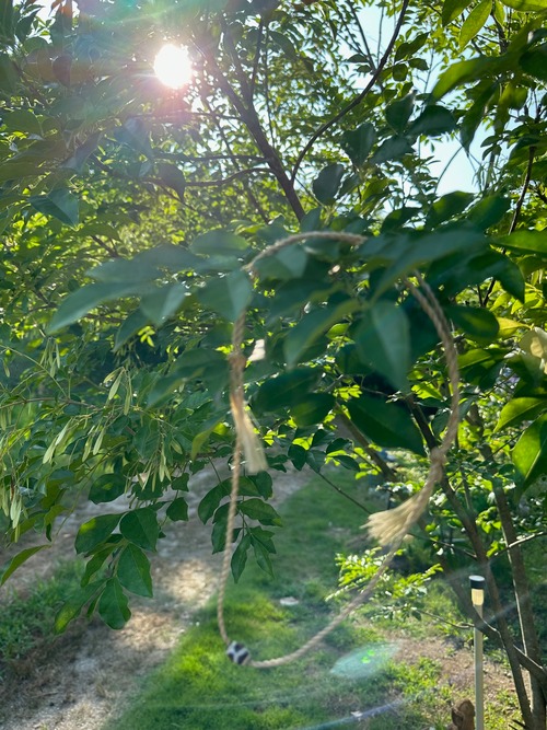 精麻(神仏を敬い天津祓いに使う麻)を8巻き(末広がり)ねじりで結びました。